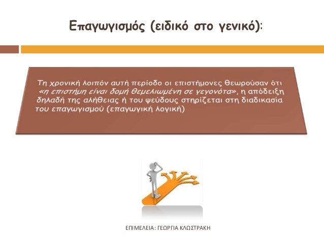 14. 14. ΢φμθςκα ιμηπυκ με ημκ «θιαζζηθυ μνζμιμγηζμυ» θαη ημκ «εμπεηνηζμυ»μη άκζνςπμη θηάκμοκ ζηε γκχζε με ηε ζθέρε ή μέζς ηεξ παναηήνεζεξ.Ο θιαζζηθυξ μνζμιμγηζηήξ οπμζηενίδεη υηη «μ ακζνχπηκμξ κμοξ έπεηπνυζβαζε ζηα αιεζή ζεμέιηα ηεξ γκχζεξ» θαη μ θιαζζηθυξ εμπεηνηζηήξαπυ ηεκ άιιε οπμζηενίδεη υηη μέζς ηςκ αηζζήζεχκ ημο μ άκζνςπμξμπμνεί κα θηάζεη ζηα αιεζή ζεμέιηα ηεξ γκχζεξ. (Chalmers, 2004)Όμςξ:ε επηζηήμε δεκ μπμνεί κα ελεηάδεηαη θάης απυ ημ πνίζμα μμκμμενεηχκυπςξ ππ ημο ιμγηθμφ ζεηηθηζμμφ, επεηδή είκαη«έκα πενίπιμθμ θαη πμιφ-επίπεδμ μυνθςμα, μηα ιεηημονγία ηεξθμηκςκηθήξ ζοκείδεζεξ θαη ςξ εθ ημφημο θηκείηαη ζε έκα πιέγμααιιειεπηδνάζεςκ» (Παηειήξ, 2008).΢ομπενάζμαηα:ΕΠΙΜΕΛΕΙΑ: ΓΕΩΡΓΙΑ ΚΛΩ΢ΣΡΑΚΗ