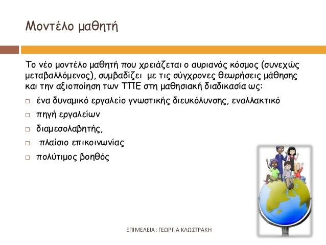 100. 100. Σμ κέμ μμκηέιμ μαζεηή πμο πνεηάδεηαη μ αονηακυξ θυζμμξ (ζοκεπχξμεηαβαιιυμεκμξ), ζομβαδίδεη με ηηξ ζφγπνμκεξ ζεςνήζεηξ μάζεζεξθαη ηεκ αλημπμίεζε ηςκ ΣΠΓ ζηε μαζεζηαθή δηαδηθαζία ςξ: έκα δοκαμηθυ ενγαιείμ γκςζηηθήξ δηεοθυιοκζεξ, εκαιιαθηηθυ πεγή ενγαιείςκ δηαμεζμιαβεηήξ, πιαίζημ επηθμηκςκίαξ πμιφηημμξ βμεζυξΜμκηέιμ μαζεηήΕΠΙΜΕΛΕΙΑ: ΓΕΩΡΓΙΑ ΚΛΩ΢ΣΡΑΚΗ