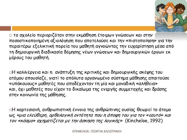 38. 38.  ημ ζπμιείμ πενημνηδυηακ ζηεκ εθμάζεζε έημημςκ γκχζεςκ θαη ζηεκπμζμζηηθμπμηεμέκε αλημιυγεζε πμο απμηειμφζε θαη ηεκ «πηζημπμίεζε» γηα ηεκπεναηηένς ελειηθηηθή πμνεία ημο μαζεηή αγκμχκηαξ ηεκ εοπανίζηεζε μέζα απυηε δεμημονγηθή δηαδηθαζία δυμεζεξ κέςκ γκχζεςκ θαη δεμημονγηθχκ ένγςκ εθμένμοξ ημο μαζεηή.Η θαιιηένγεηα θαη ε ακάπηολε ηεξ θνηηηθήξ θαη δεμημονγηθήξ ζθέρεξ ημοαηυμμο απμοζίαδε, γηαηί ημ απυιοηα μνγακςμέκμ ζφζηεμα μάζεζεξ απαηημφζε«οπάθμομοξ» μαζεηέξ πμο απμδέπμκηακ ηε μία θαη μμκαδηθή «αιήζεηα»θαη, υπη μαζεηέξ πμο είπακ ημ δηθαίςμα ηεξ εκενγήξ ζομμεημπήξ θαη δνάζεξζηεκ θμηκςκία ηεξ μάζεζεξ.Η θανηεζηακή, ακζνςπηζηηθή έκκμηα ηεξ ακζνχπηκεξ μοζίαξ ζεςνεί ημ άημμμςξ «μηα ειεφζενε, μνζμιμγηθή μκηυηεηα πμο ε άπμρε ημο γηα ημκ «εαοηυ» θαηημκ «θυζμμ» ζπεμαηίδεηαη με ηεκ άζθεζε ηεξ ιμγηθήξ» (Kincheloe, 1992)ΕΠΙΜΕΛΕΙΑ: ΓΕΩΡΓΙΑ ΚΛΩ΢ΣΡΑΚΗ