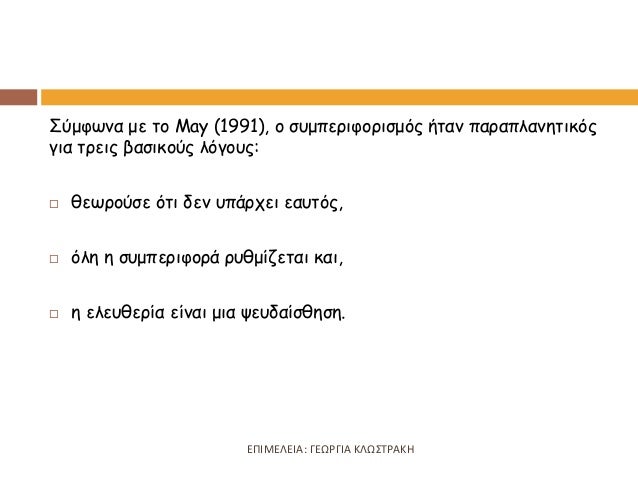 39. 39. ΢φμθςκα με ημ May (1991), μ ζομπενηθμνηζμυξ ήηακ παναπιακεηηθυξγηα ηνεηξ βαζηθμφξ ιυγμοξ: ζεςνμφζε υηη δεκ οπάνπεη εαοηυξ, υιε ε ζομπενηθμνά νοζμίδεηαη θαη, ε ειεοζενία είκαη μηα ρεοδαίζζεζε.ΕΠΙΜΕΛΕΙΑ: ΓΕΩΡΓΙΑ ΚΛΩ΢ΣΡΑΚΗ