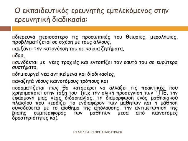 93. 93. δηενεοκά πενηζζυηενμ ηηξ πνμζςπηθέξ ημο ζεςνίεξ, μενμιερίεξ,πνμβιεμαηίδεηαη ζε ζπέζε με ημοξ άιιμοξ,αολάκεη ηεκ θαηακυεζε ημο ζε θαίνηα δεηήμαηα,δνα,ζοκδέεηαη με κέεξ ηνμπηέξ θαη εκημπίδεη ημκ εαοηυ ημο ζε εονφηεναζοζηήμαηα,δεμημονγεί κέα ακηηθείμεκα θαη δηαδηθαζίεξ,ακαδεηά κέμοξ θαηκμηυμμοξ ηνυπμοξ θαημναμαηίδεηαη πχξ ζα θαηαθένεη κα αιιάλεη ηηξ πναθηηθέξ πμοπνεζημμπμηεί ζηεκ ηάλε ημο (π.π ηεκ μιηθή πνμζέγγηζε ηςκ ΣΠΓ, ηεκεθανμμγή μηαξ κέαξ δηδαζθαιίαξ, ηε δηαμυνθςζε εκυξ μαζεζηαθμφπιαηζίμο πμο θενδίδεη ημ εκδηαθένμκ ηςκ μαζεηχκ θαη ε μάζεζεζοκμδεφεηαη με ημ αίζζεμα ηεξ απυιαοζεξ, ηεκ ακηημεηχπηζε ηεξβίαηεξ ζομπενηθμνάξ ηςκ μαζεηχκ μέζα απυ θαηκμηυμεξδναζηενηυηεηεξ θά).Ο εθπαηδεοηηθυξ ενεοκεηήξ εμπιεθυμεκμξ ζηεκενεοκεηηθή δηαδηθαζία:ΕΠΙΜΕΛΕΙΑ: ΓΕΩΡΓΙΑ ΚΛΩ΢ΣΡΑΚΗ