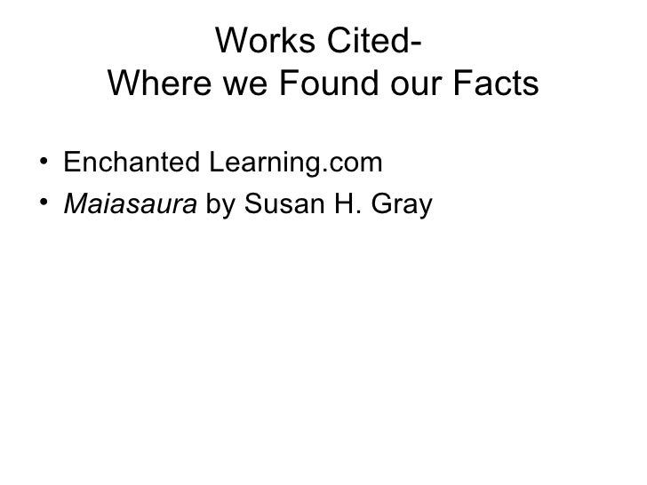 16. 16. Works Cited- Where we Found our Facts• Enchanted Learning.com• Maiasaura by Susan H. Gray