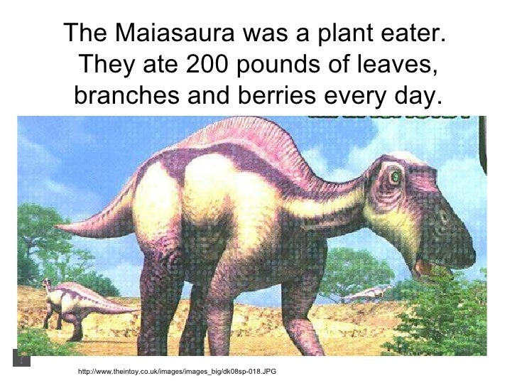 3. 3. The Maiasaura was a plant eater. They ate 200 pounds of leaves, branches and berries every day. http://www.theintoy.co.uk/images/images_big/dk08sp-018.JPG