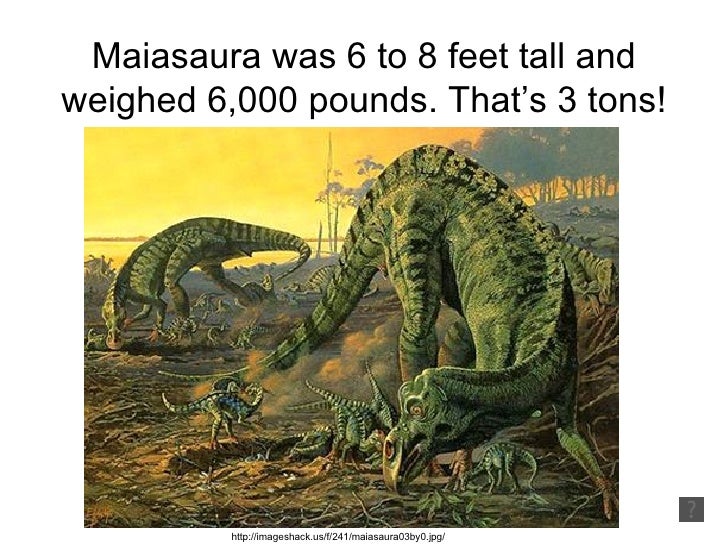 6. 6. Maiasaura was 6 to 8 feet tall andweighed 6,000 pounds. That’s 3 tons! http://imageshack.us/f/241/maiasaura03by0.jpg/