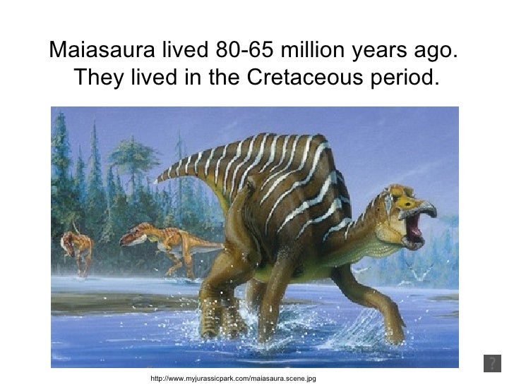 8. 8. Maiasaura lived 80-65 million years ago. They lived in the Cretaceous period. http://www.myjurassicpark.com/maiasaura.scene.jpg