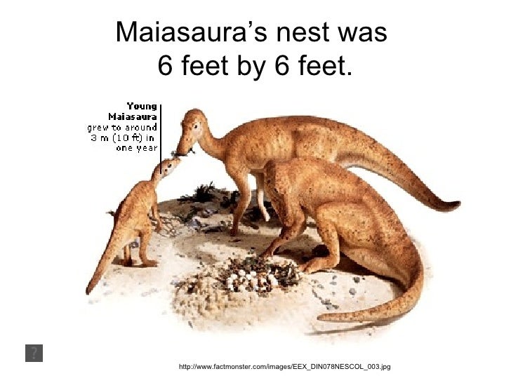 9. 9. Maiasaura’s nest was 6 feet by 6 feet. http://www.factmonster.com/images/EEX_DIN078NESCOL_003.jpg