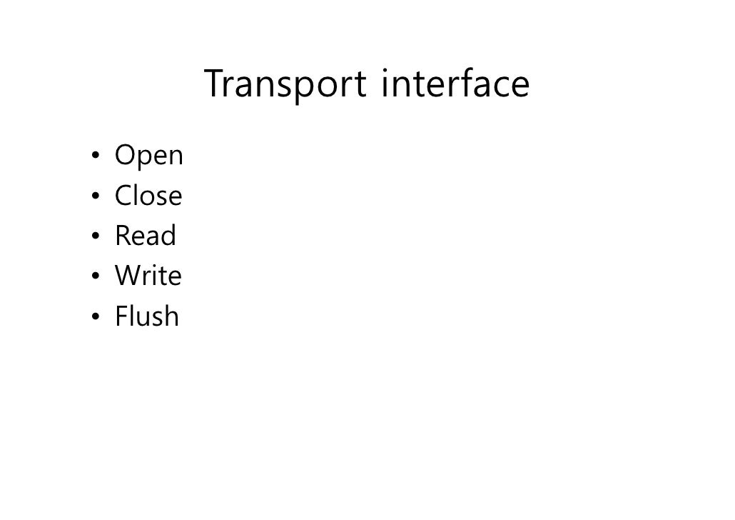 38. 38. Transport interface• Open• Close• Read• Write• Flush