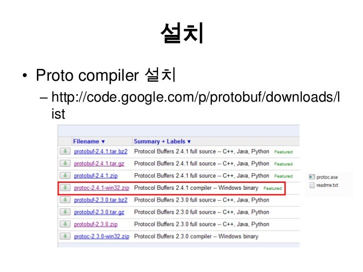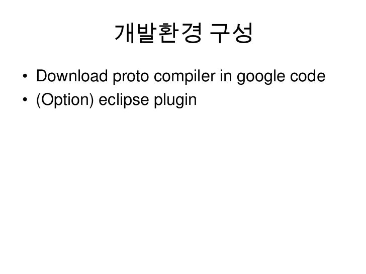 10. 10. 개발환경 구성<br />Download proto compiler in google code<br />(Option) eclipse plugin<br />