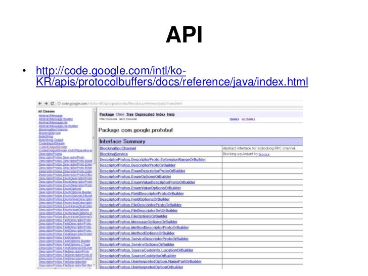 37. 37. API<br />http://code.google.com/intl/ko-KR/apis/protocolbuffers/docs/reference/java/index.html<br />