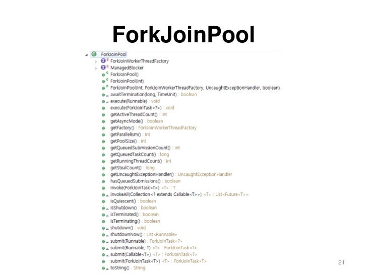 20. 20. API (ForkJoinPool)<br />20<br />Executor<br />ExecutorService<br />AbstractExecutorService<br />ForkJoinPool<br />
