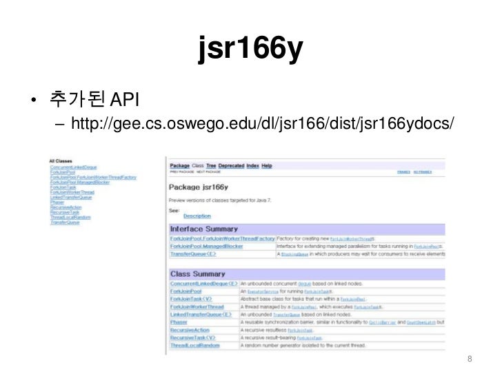 8. 8. jsr166y<br />추가된 API<br />http://gee.cs.oswego.edu/dl/jsr166/dist/jsr166ydocs/<br />8<br />