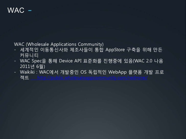 43. 43. WAC Spec을 통해 Device API 표준화를 진행중에 있음(WAC 2.0 나옴 2011년 6월)
