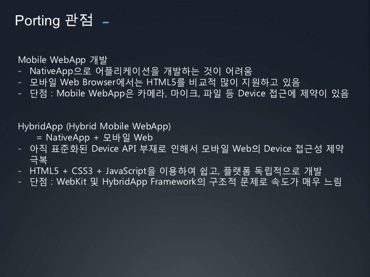 6. 6. Porting 관점<br />Mobile WebApp개발<br /><ul><li>NativeApp으로 어플리케이션을 개발하는 것이 어려움