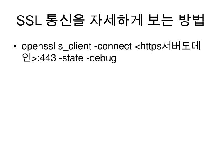 7. 7. SSL 통신을 자세하게 보는 방법 <br />openssls_client -connect <https서버도메인>:443 -state -debug<br />