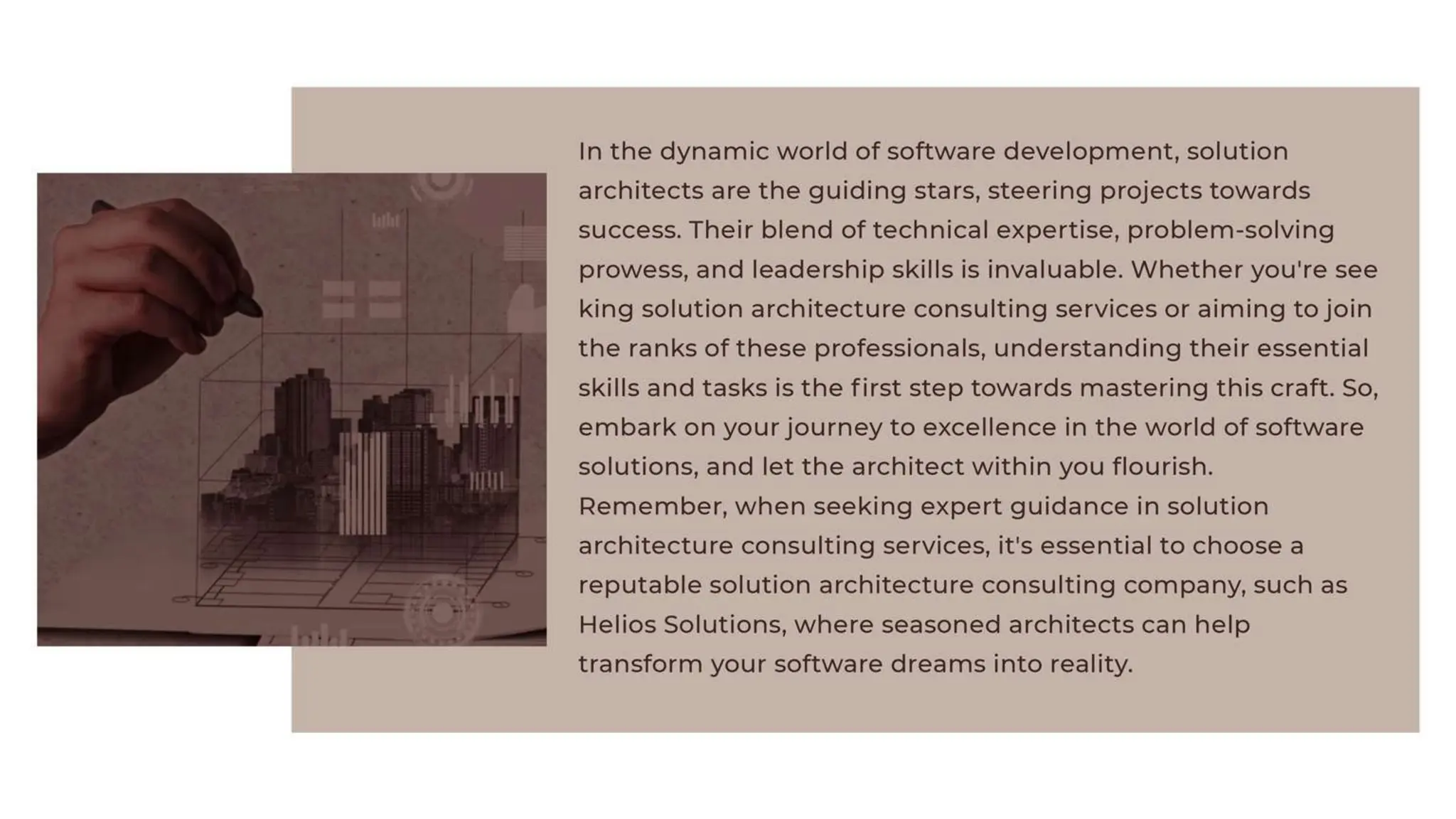 The document outlines the essential duties and strategic mindset required for a software solution architect. It serves as a comprehensive guide to software solution architecture, including consulting services. The focus is on mastering the craft to achieve success in this role.