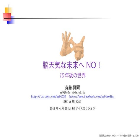 1. 1. 深読みビットコイン(2) コンセンサスの行方 (IoT とブロックチェインのつれない関係) 斉藤賢爾 研究会 2015.2 ks91@sfc.wide.ad.jp 深読みビットコイン (2) コンセンサスの行方 — 2015-02-27 – p.1/41