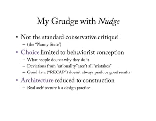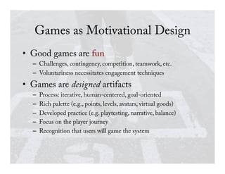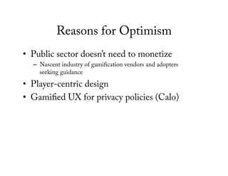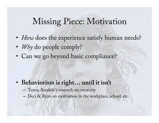 "Beyond Nudges: Gamification as Motivational Architecture," presentation to the 2013 Computers, Privacy, and Data Protection conference, Brussels, Belgium