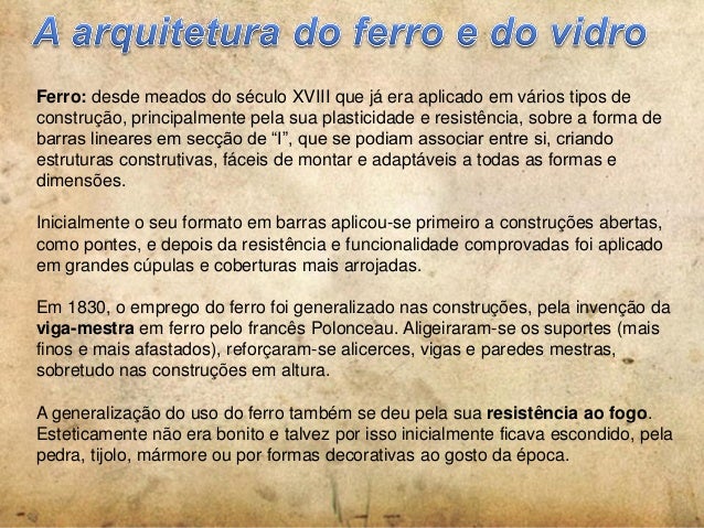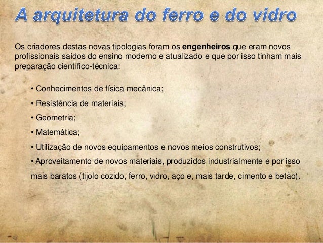 A arquitetura do ferro e do vidro nos finais do século XIX/Início do século XX
