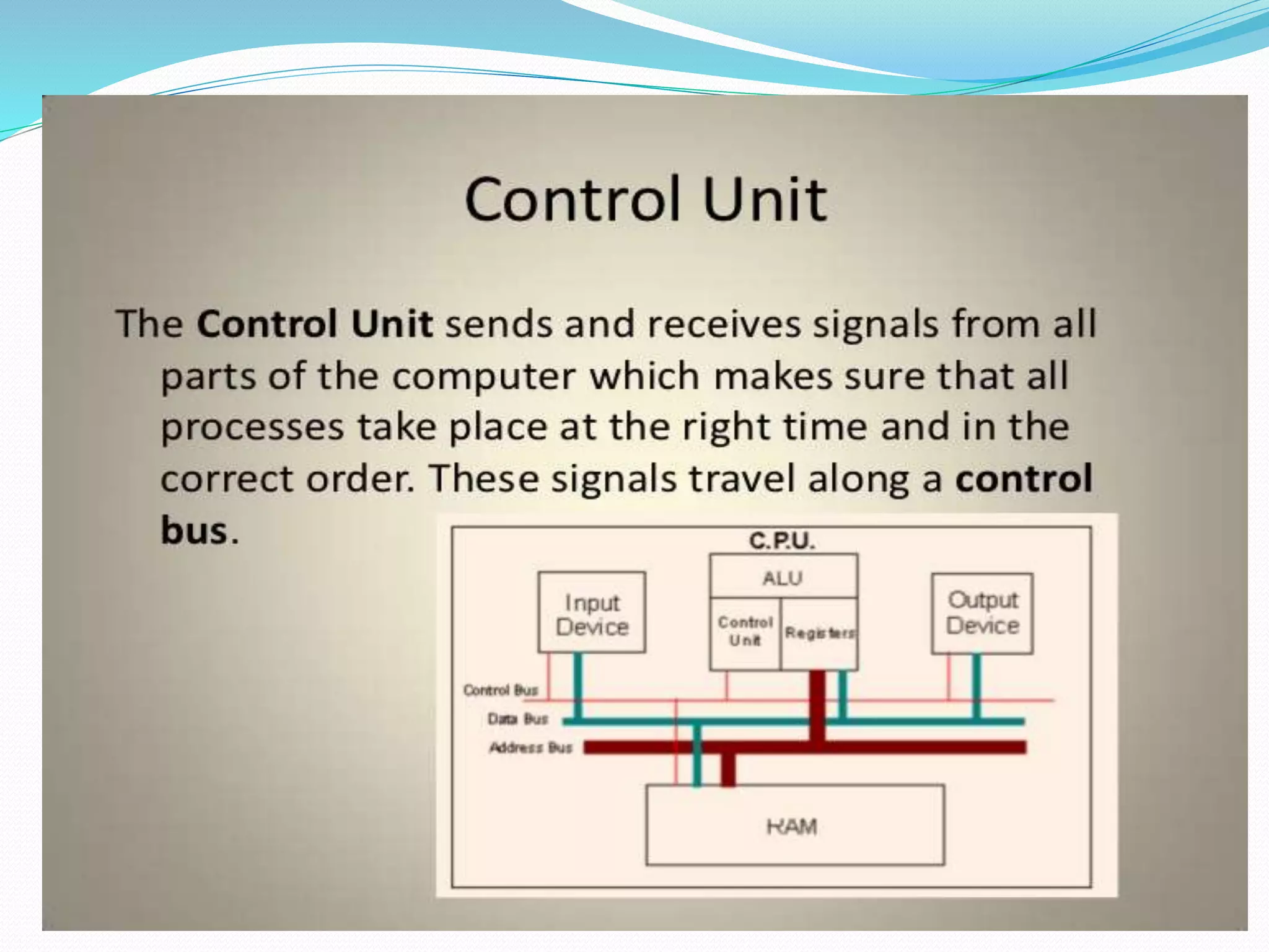 Describes three primary units of a computer: CPU, input devices, and output devices.