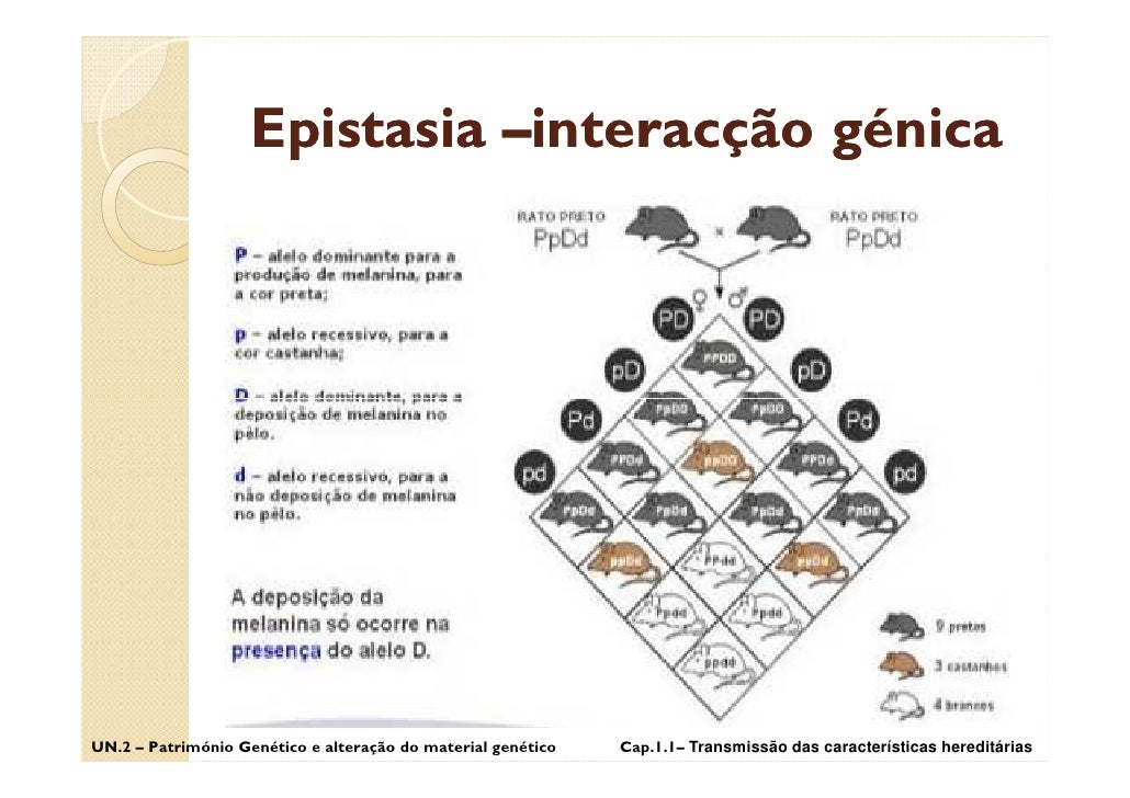 11. 11. Epistasia –interacção génica UN.2 – Património Genético e alteração do material genético Cap.1.1– Transmissão das características hereditárias