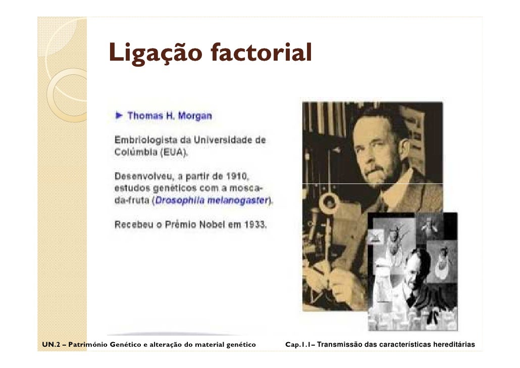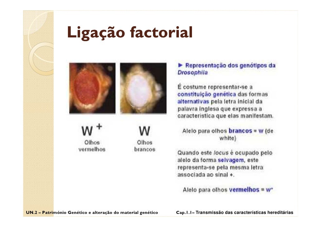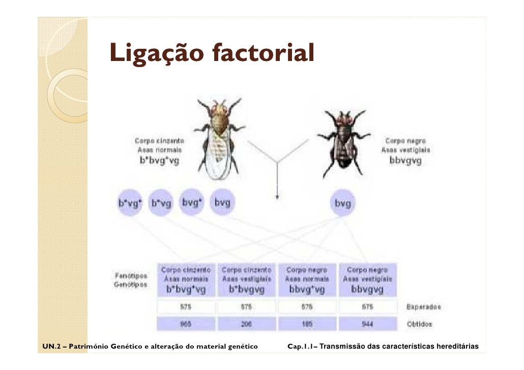13. 13. Ligação factorial UN.2 – Património Genético e alteração do material genético Cap.1.1– Transmissão das características hereditárias