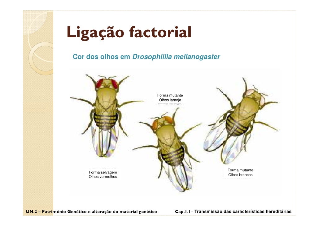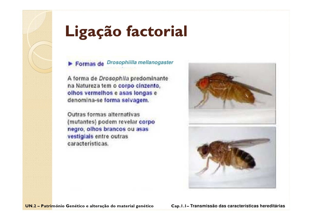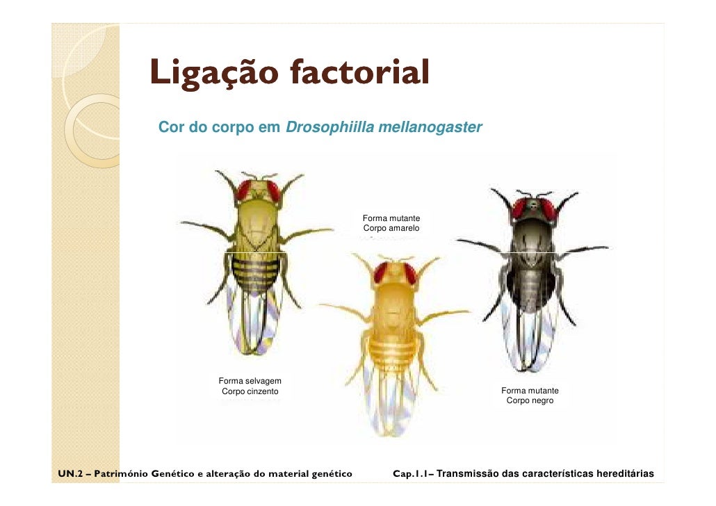 16. 16. Ligação factorial Drosophiilla mellanogaster UN.2 – Património Genético e alteração do material genético Cap.1.1– Transmissão das características hereditárias