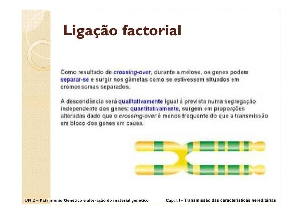 24. 24. Ligação factorial UN.2 – Património Genético e alteração do material genético Cap.1.1– Transmissão das características hereditárias