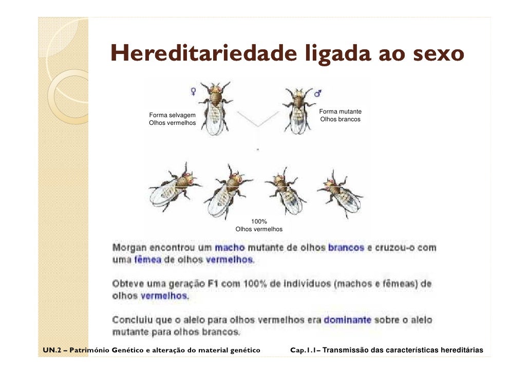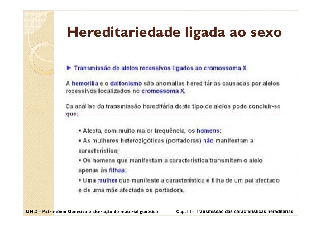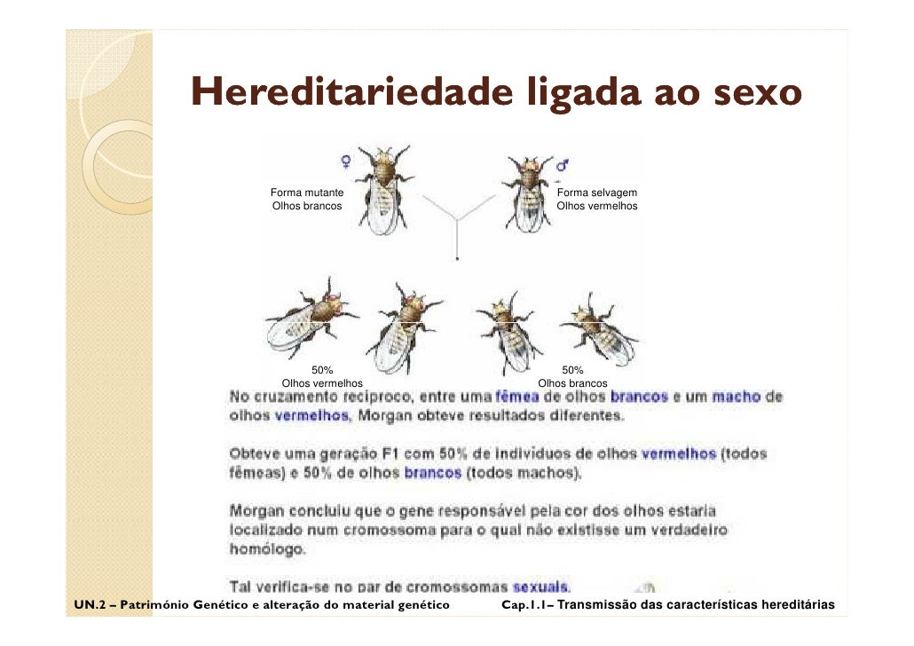 50. 50. Hereditariedade ligada ao sexo UN.2 – Património Genético e alteração do material genético Cap.1.1– Transmissão das características hereditárias