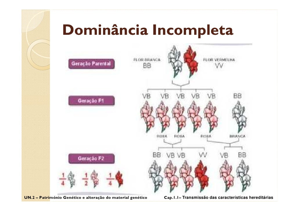 3. 3. Dominância Incompleta UN.2 – Património Genético e alteração do material genético Cap.1.1– Transmissão das características hereditárias