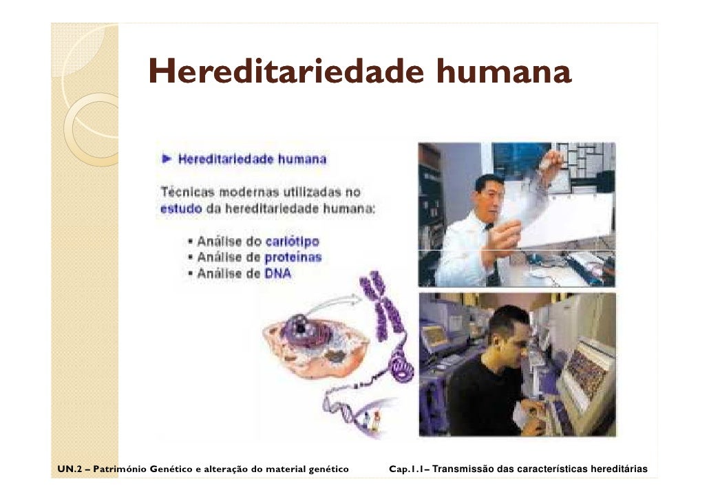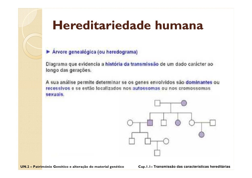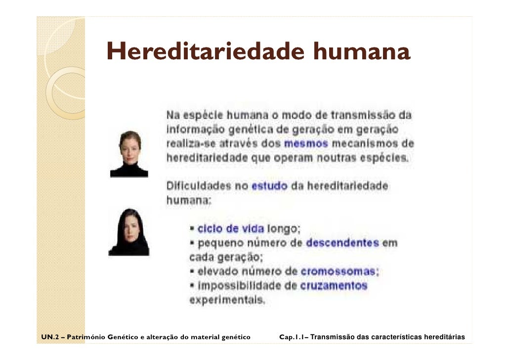 33. 33. Hereditariedade humana UN.2 – Património Genético e alteração do material genético Cap.1.1– Transmissão das características hereditárias