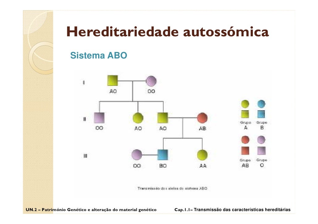 37. 37. Hereditariedade autossómica Sistema ABO UN.2 – Património Genético e alteração do material genético Cap.1.1– Transmissão das características hereditárias