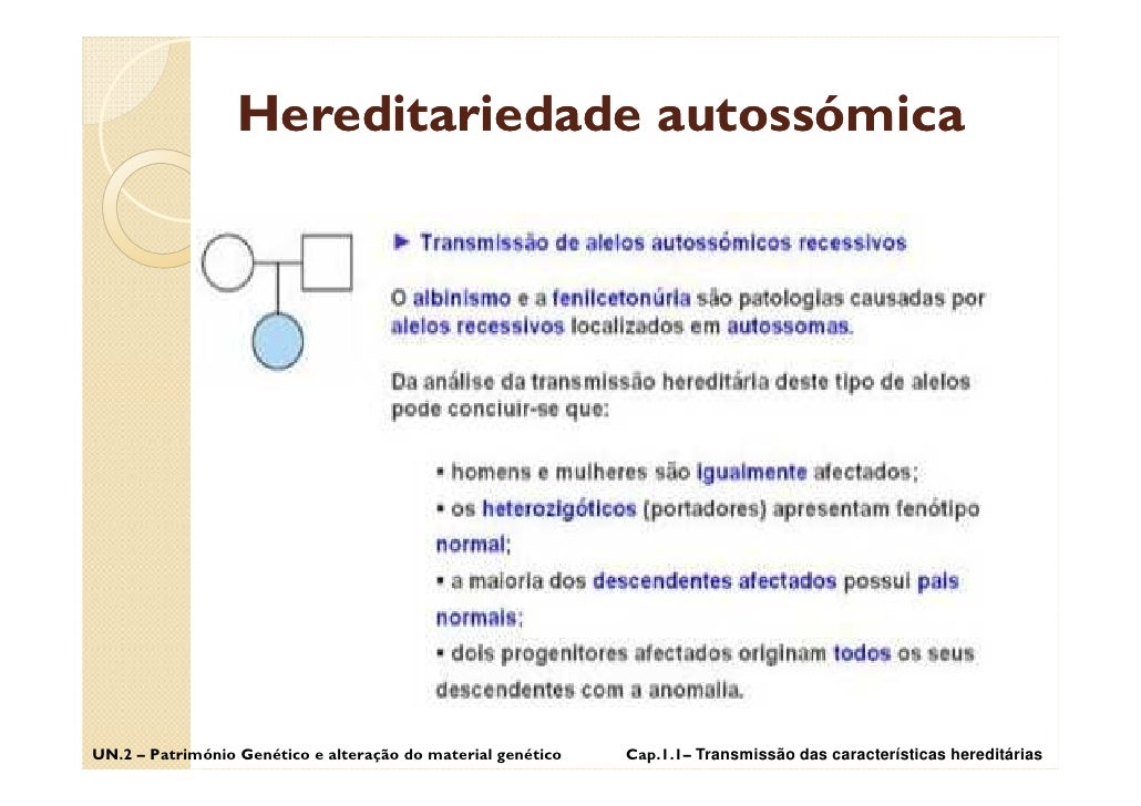 41. 41. Hereditariedade autossómica UN.2 – Património Genético e alteração do material genético Cap.1.1– Transmissão das características hereditárias