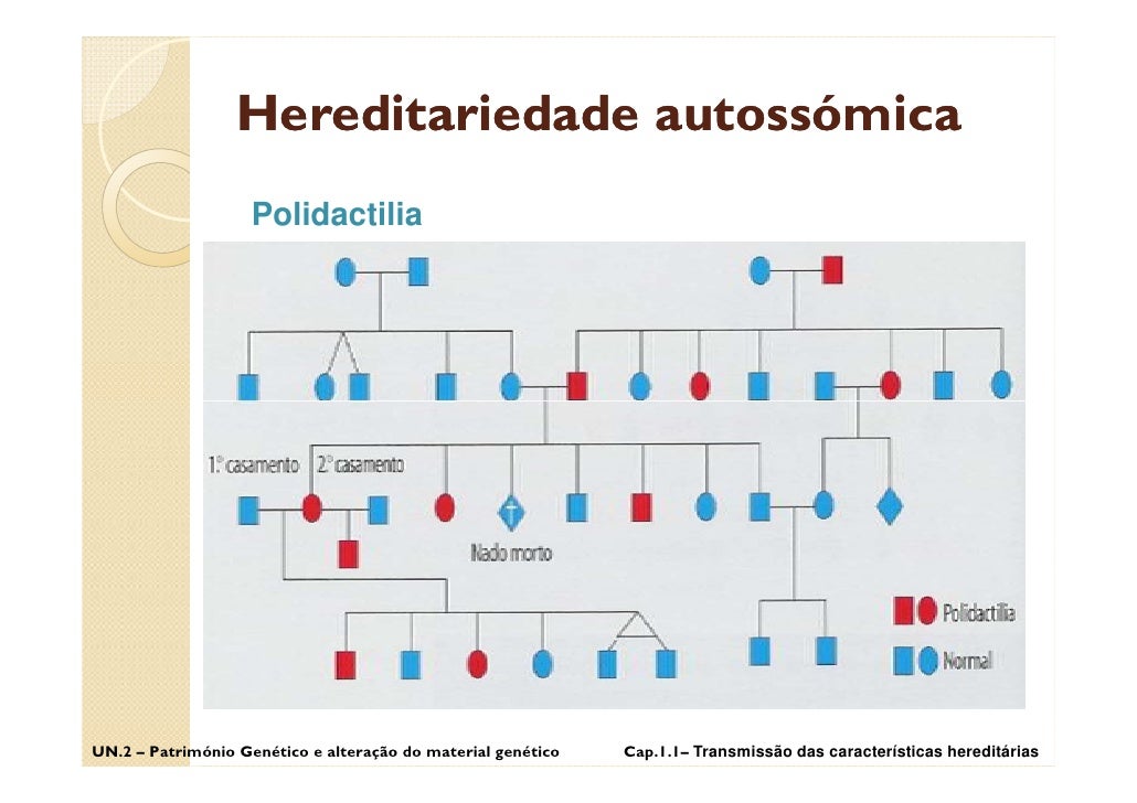 45. 45. Hereditariedade autossómica Polidactilia UN.2 – Património Genético e alteração do material genético Cap.1.1– Transmissão das características hereditárias