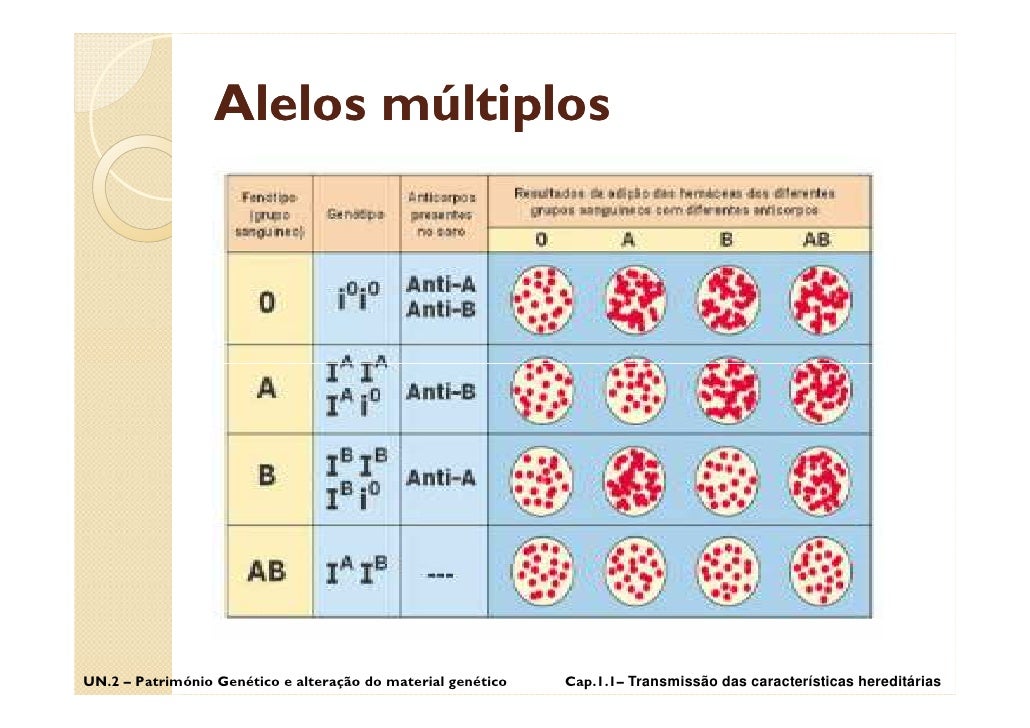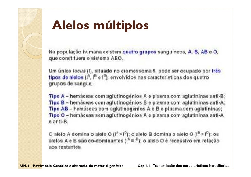 9. 9. Alelos múltiplos UN.2 – Património Genético e alteração do material genético Cap.1.1– Transmissão das características hereditárias