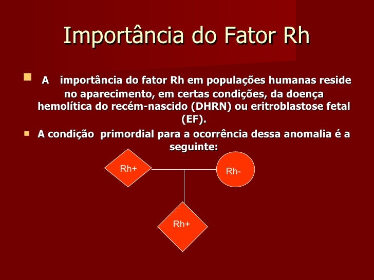 11. 13. Importância do Fator Rh <ul><li>A importância do fator Rh em populações humanas reside no aparecimento, em certas condições, da doença hemolítica do recém-nascido (DHRN) ou eritroblastose fetal (EF). </li></ul><ul><li>A condição primordial para a ocorrência dessa anomalia é a seguinte: </li></ul>Rh+ Rh- Rh+