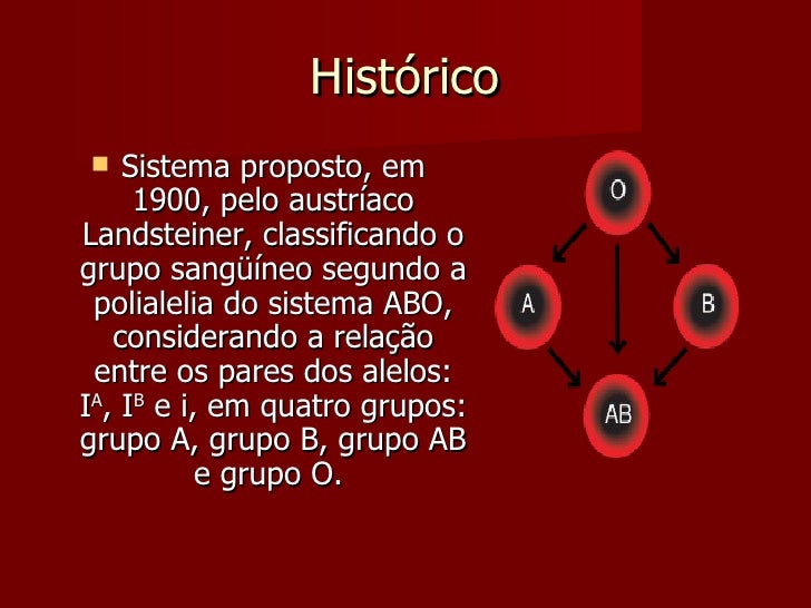 2. 2. Histórico <ul><li>Sistema proposto, em 1900, pelo austríaco Landsteiner, classificando o grupo sangüíneo segundo a polialelia do sistema ABO, considerando a relação entre os pares dos alelos: I A , I B e i, em quatro grupos: grupo A, grupo B, grupo AB e grupo O. </li></ul>