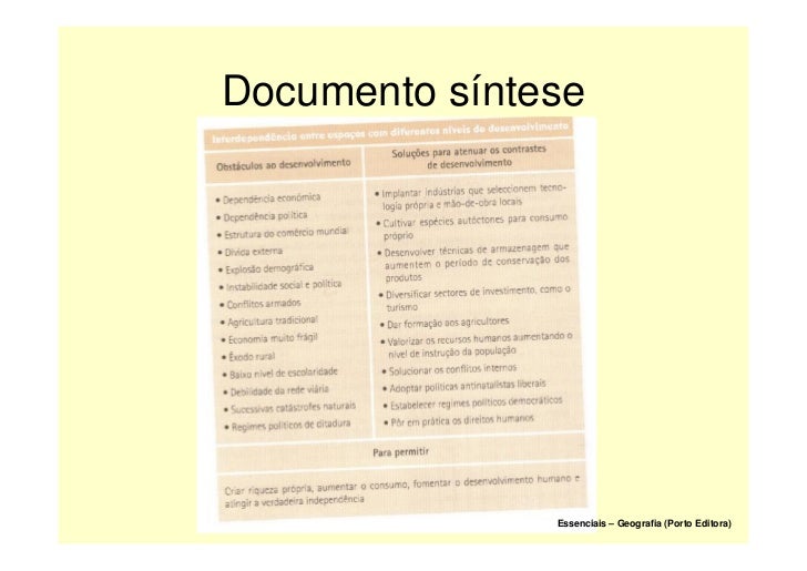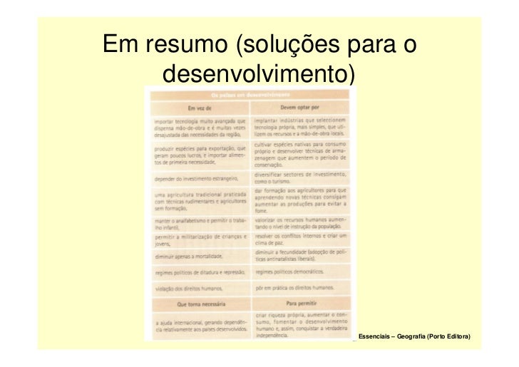 21. 21. Em resumo (soluções para o desenvolvimento) Essenciais – Geografia (Porto Editora)