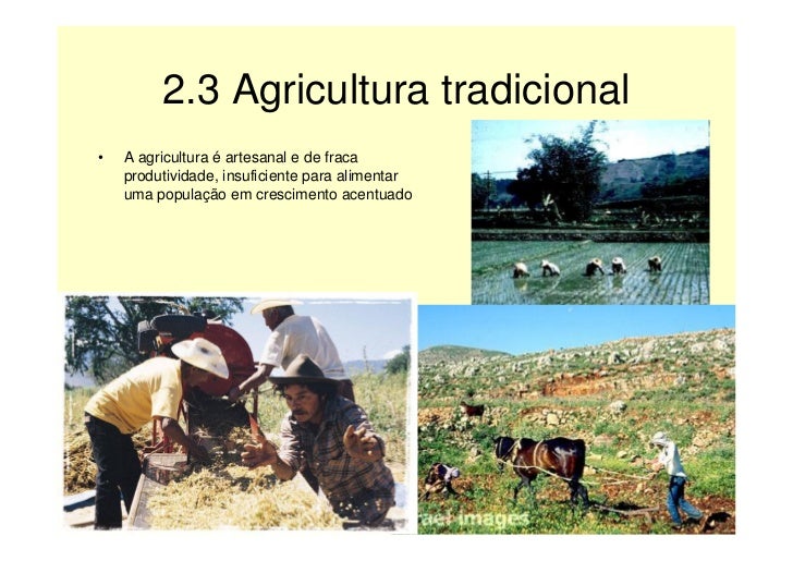 6. 6. 2.3 Agricultura tradicional • A agricultura é artesanal e de fraca produtividade, insuficiente para alimentar uma população em crescimento acentuado