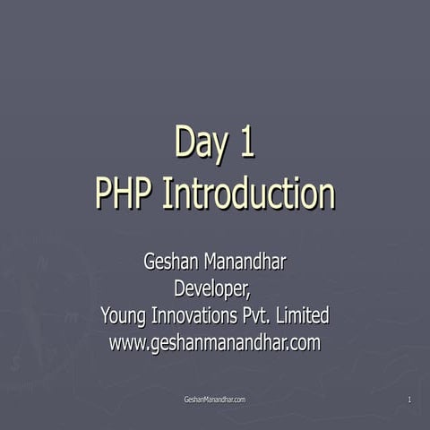 3. 3. ● PHP (Personal Home Page Tools) is a computer scripting dynamically typed language mainly used for web applications development. <?php $num1 = 10; $num2 = 20; $num3 = 30; $sum = $num1 + $num2 + $num3; echo "sum=$sum"; ?> LifeMichael.com Introduction