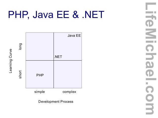 20. 20. long .NET short Learning Curve Java EE PHP simple complex Development Process LifeMichael.com PHP, Java EE & .NET