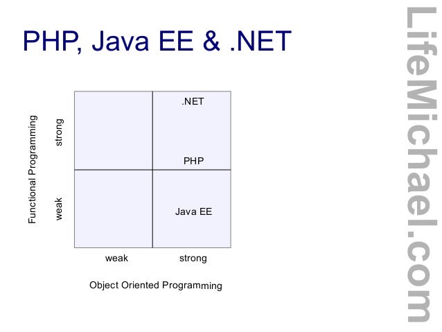 23. 23. strong PHP weak Functional Programming .NET Java EE weak strong Object Oriented Programming LifeMichael.com PHP, Java EE & .NET