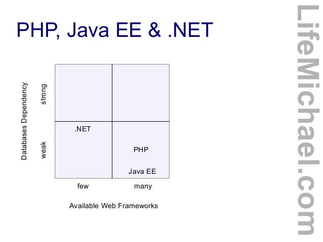 24. 24. strong weak Databases Dependency .NET PHP Java EE few many Available Web Frameworks LifeMichael.com PHP, Java EE & .NET