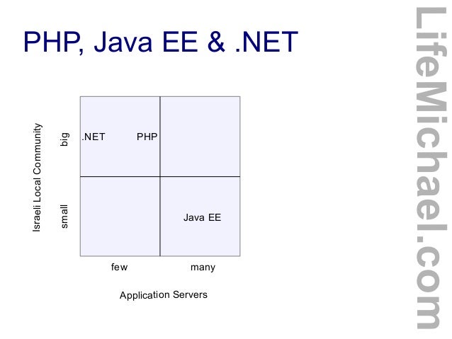 25. 25. big PHP small Israeli Local Community .NET Java EE few many Application Servers LifeMichael.com PHP, Java EE & .NET