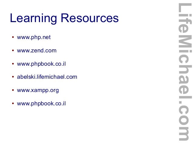 26. 26. ● www.php.net ● www.zend.com ● www.phpbook.co.il ● abelski.lifemichael.com ● www.xampp.org ● www.phpbook.co.il LifeMichael.com Learning Resources