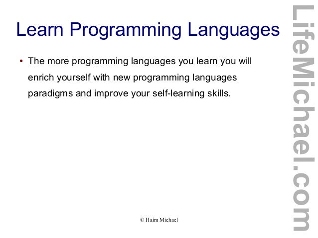 12. 12. ● The more programming languages you learn you will enrich yourself with new programming languages paradigms and improve your self-learning skills. © Haim Michael LifeMichael.com Learn Programming Languages