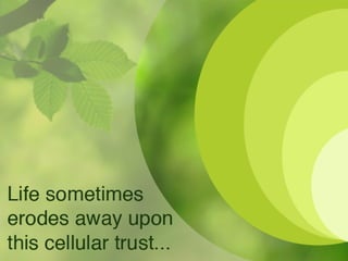 A short while ago, a friend of mine told me how memory resides in every cell in our bodies. When we remember an incident, for example, we relive the experience all over again on some cellular level. The following presentation presents this idea of cellular memory in context to cellular trust.