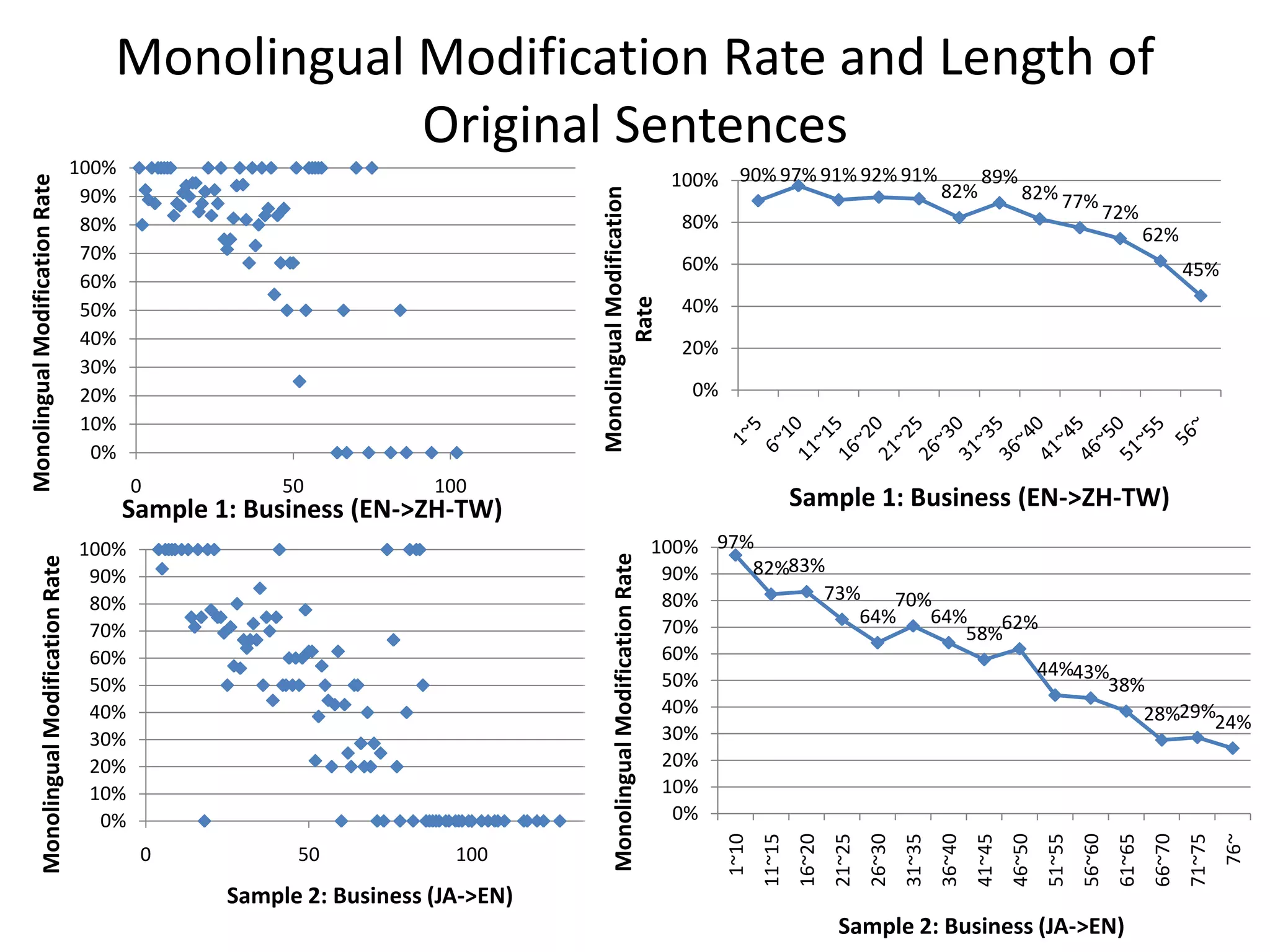 62. 62. Monolingual Modification Rate and Length of Original Sentences<br />