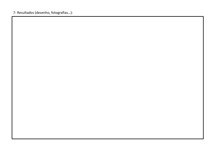 2. 2. 7- Resultados (desenho, fotografias…): <br />