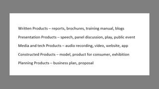 This document outlines 7 steps for implementing project-based learning in schools. It recommends first determining the content, skills, and final product. Second, launching the project with an entry event and driving question. Third, letting students formulate questions and determine what they need to know. Fourth, forming teams with roles and shared responsibilities. Fifth, providing structure with a rubric, activities, resources, and timeline. Sixth, students start researching, taking field trips, and creating their product. Seventh, frequent checkpoints, reflections, and formative assessments occur before presenting the final product.