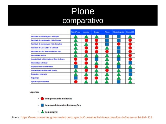34. 34. Plone comparativo Fonte: https://www.consultas.governoeletronico.gov.br/ConsultasPublicas/consultas.do?acao=exibir&id=113